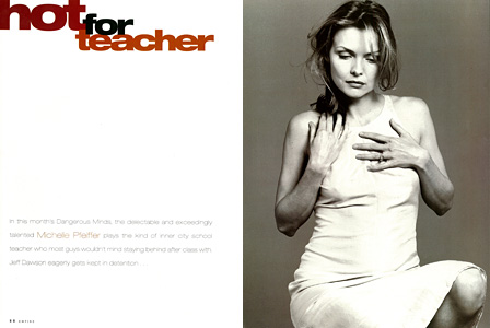 In this month’s Dangerous Minds, the delectable and exceedingly talented Michelle Pfeiffer plays the kind of inner city school teacher who most guys wouldn’t mind staying behind after class with. Jeff Dawson eagerly gets kept in detention…