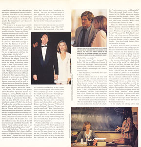 It’s been reported that Pfeiffer sold her house on Rockingham Drive, now known as O.J. Boulevard, after tourists flooded Brentwood. She says that’s not true, she stills lives there, through she’s not O.J.’s neighbor. “It’s gotten a little weird,” she admits, “like a war zone.” On Saturday afternoons, she used to go to Mezzaluna, where Ronald Goldman worked, because it was mepty, “and my daughter could make a mess and be obnoxious, and no one would care. Now, you can’t get a table.”